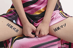 フォーレターワードをM奴隷に!横文字の達筆で「調教マゾ」と書かれた簡易刺青シール。