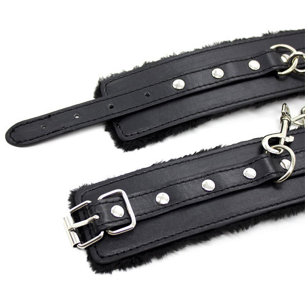 もこもこファー素材で優しく拘束♪チェーン付きのSM拘束手枷。