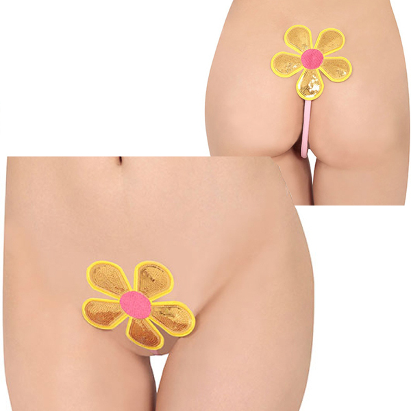 一瞬で装着できる♪黄色×ピンクの大きなお花が大事な部分に咲き誇る8mm幅のI型ストリング。