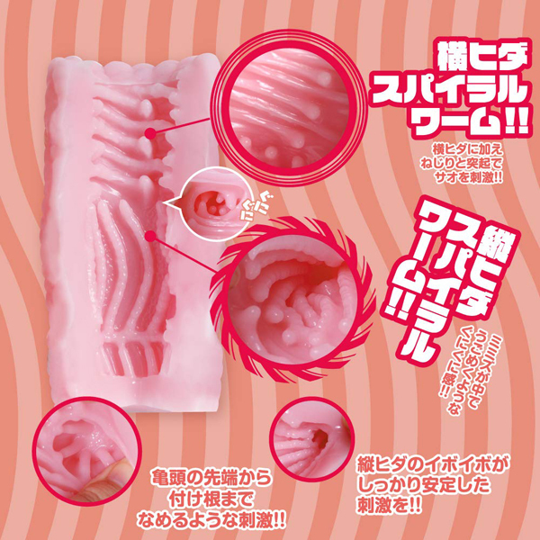 先端から根元まで、螺旋を描くように捻じれたスパイラルワーム構造が絡み付く!プニッと柔らか質感の非貫通オナホ(日本製)。