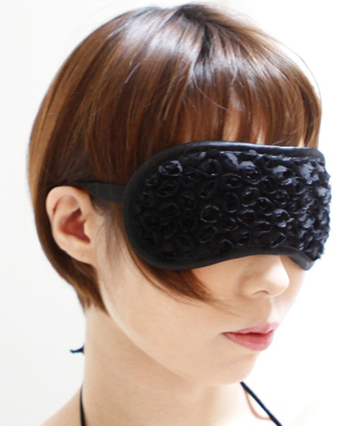 厚みのある生地が光を遮断!ドキドキ感を演出する黒の花飾りで装飾したゴシックなアイマスク。