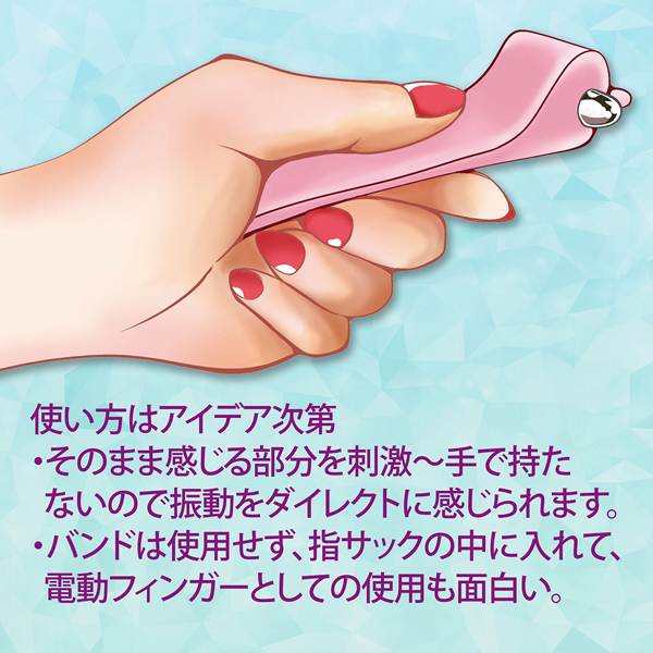しかしながら驚きのハイパワーを搭載!極小サイズなので、当てたい場所にダイレクトに攻撃が可能。 付属の専用ベルトを使えば、手で持たないので、威力をなくすことなく、振動をダイレクトに感じられます。 指サックの中に入れて、電動フィンガーとしての使用も可能です。 ¥1530(販売価格¥2860)