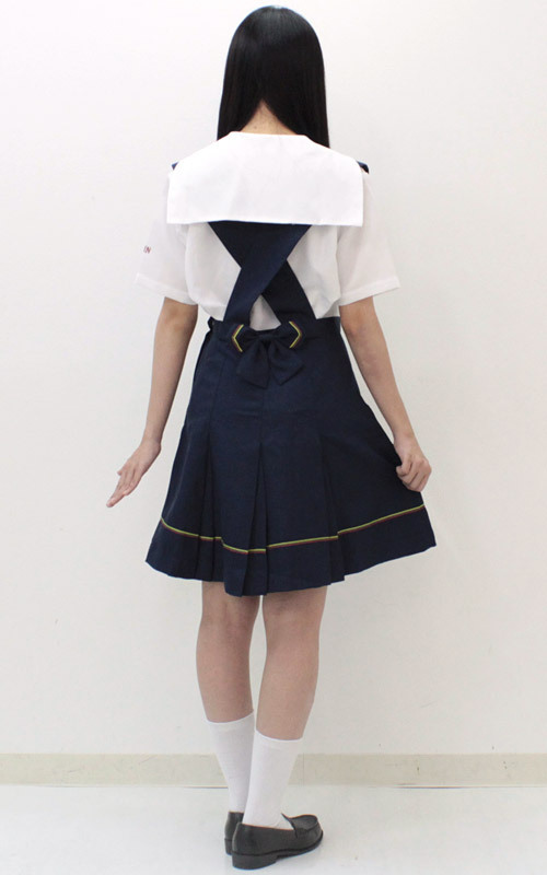 ブラウスの袖にロゴ、ライン入りジャンパースカートの後ろには、大きなリボンも付いています。 どこから見ても抜かりないオシャレな制服コスチュームです。 ※水洗い不可、塩素系漂白剤による漂白不可、アイロンは中温で当て布使用、ドライクリーニング可、色落ちの可能性があります、ご注意ください。 ※こちらの商品は在庫の状況によりお届けまでに4日〜7日程度かかる場合がございます。 ¥6560(販売価格¥32450)