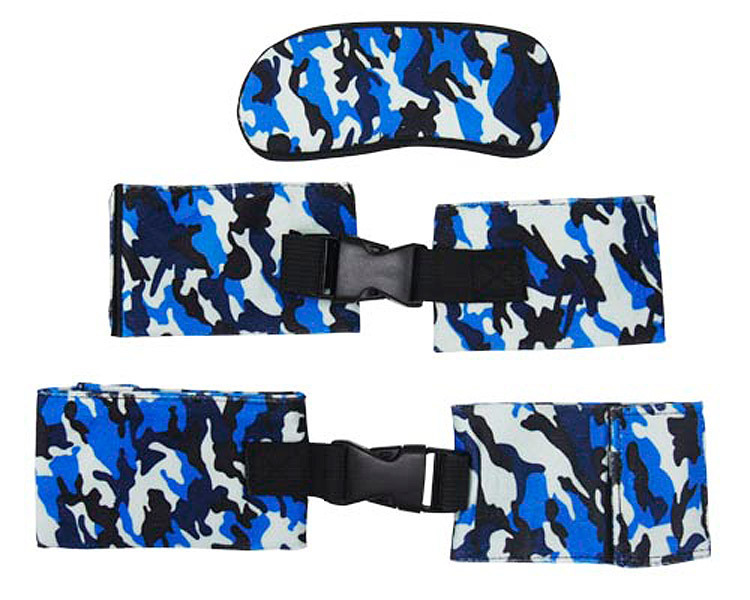ちょっとしたマンネリ打破に…!ブルー系カモフラ柄がお洒落なSM拘束3点セット。