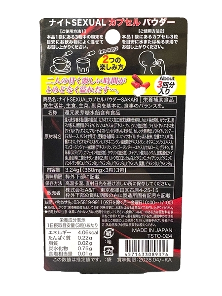 HOME> エッチコスメ > 男性コスメ > ナイトSEXUALカプセルパウダー sakari(サ・カ・リ) ナイトSEXUALカプセルパウダー sakari(サ・カ・リ) 商品番号:e28778