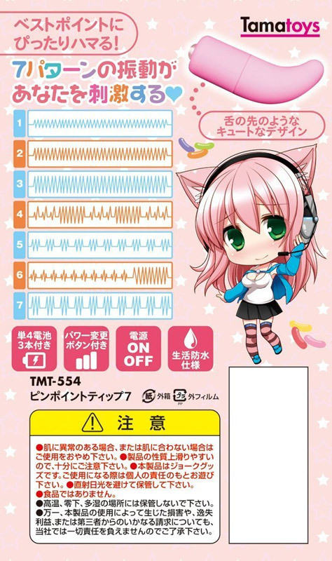 ●本体はなめらかな肌触りの高級マット加工●先端がクイっと曲がった舌先フォルムの振動部●ボタンを押す度に変化する7パターンの振動機能を搭載●お手入れし易い生活防水仕様。 小回りのきくコンパクトさと細めの先端フォルムが、乳首やクリトリスなど敏感ポジションをしっかりキャッチしてくれる優秀ローターです。 ●メーカー型番:TMT-554 ¥1980(販売価格¥3080)