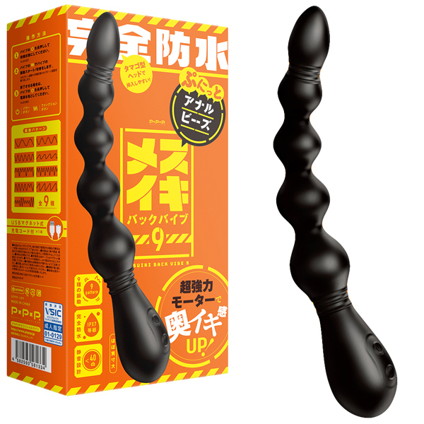 超強力モーターで奥まで響く!5連球の凸凹刺激&9種類振動が絶頂へ導くIPX7等級の完全防水アナル用のメスイキバックバイブ。