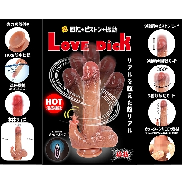 ピストン+回転+振動+温感のディルドバイブが登場!9種類回転ピストンx9種類振動=81種類パターン!!約40℃の膣内快感温度まで加熱できます。
