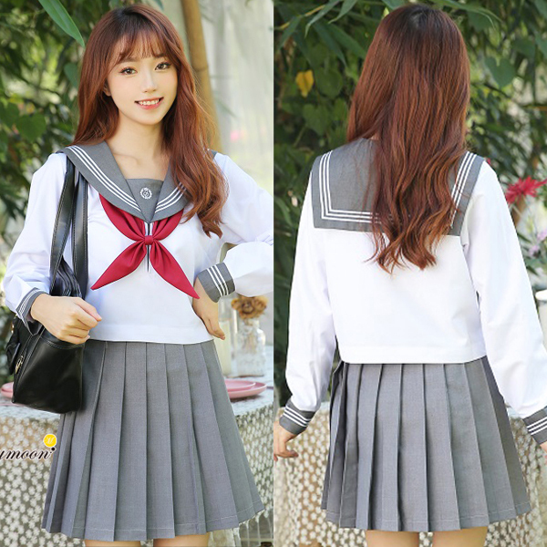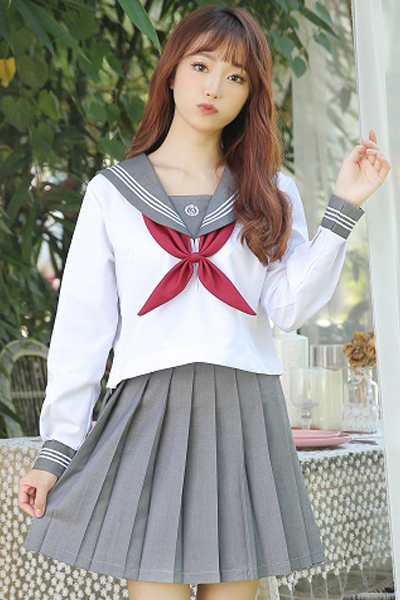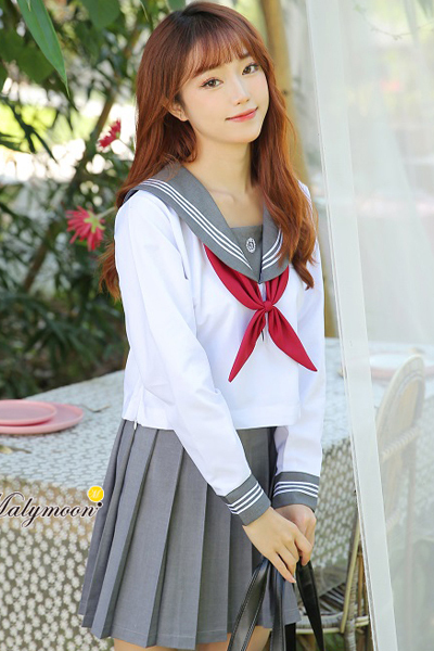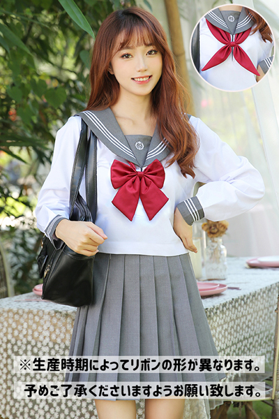 HOME> コスプレ衣装 > セーラー服・制服 > <malymoon>赤リボン長袖セーラー服(グレー) <malymoon>赤リボン長袖セーラー服(グレー) 商品番号:wm0139